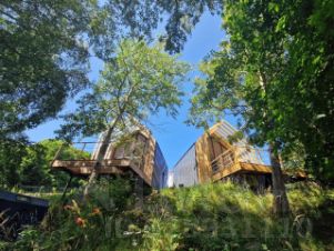 Шесть коттеджей (3 стандартных "Канары", 1 улучшенный видовой с сауной, 2 видовых купольных дома) спроектированы известным калининградским архитектором с учетом рельефа и видовых особенностей участка. Открытая планировка создает ощущение простора, а двусветное остекление наполняет дом естественным светом.