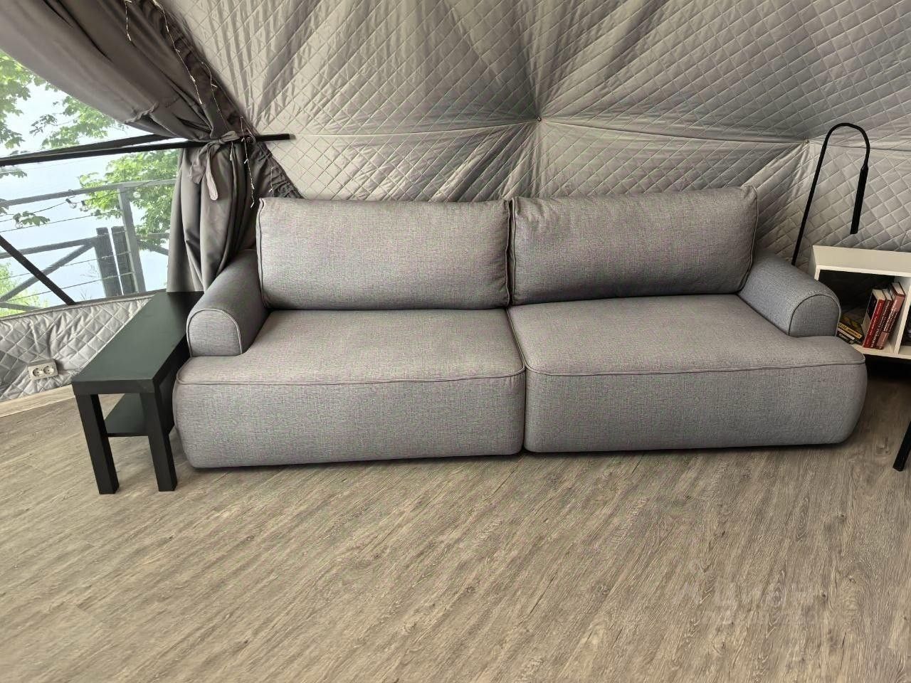 Площадь 50 кв.метров. Внизу два гостевых раскладных дивана, с которых открывается потрясающий вид на все Янтарное озеро. Наверху двуспальный ортопедический матрас, свет для чтения, розетки, стеллаж для вещей.