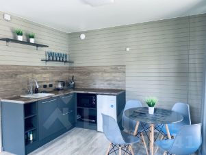 Имеется все необходимое для комфортного отдыха и проживания: оборудованная кухня, полный комплект посуды и столовых приборов, микроволновая печь, чайник, плита, холодильник. Кулер с питьевой водой
