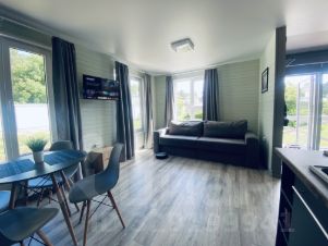 В гостиной имеется раскладной диван с возможностью размещения двух спальных мест, телевизор.