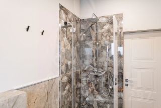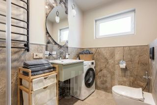 Полностью оборудованная кухня: духовка, кофемашина, индукционная плита, СВЧ, посудомоечная машина, холодильник, морозильник.