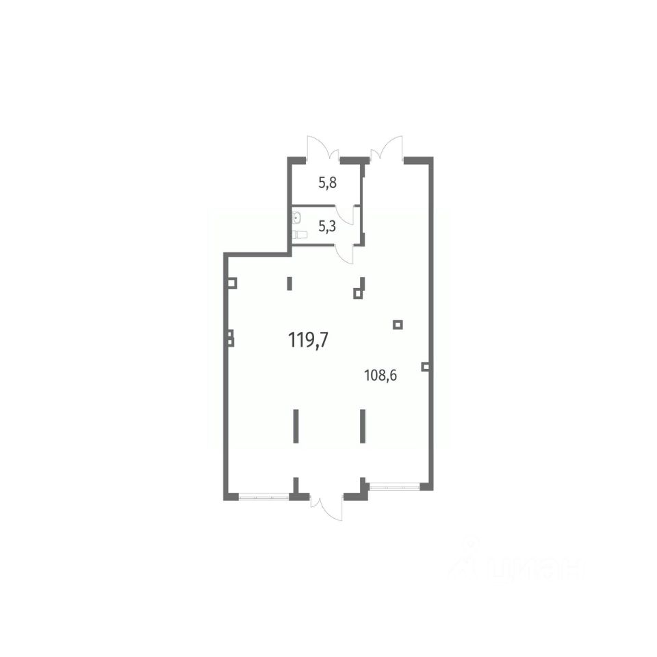 Помещение 1 расположено по адресу: Калининград, ул. Псковская, 21. Площадь помещения составляет 119,7 кв.м. Высота потолков составляет 3 м. Продажа напрямую от застройщика.
