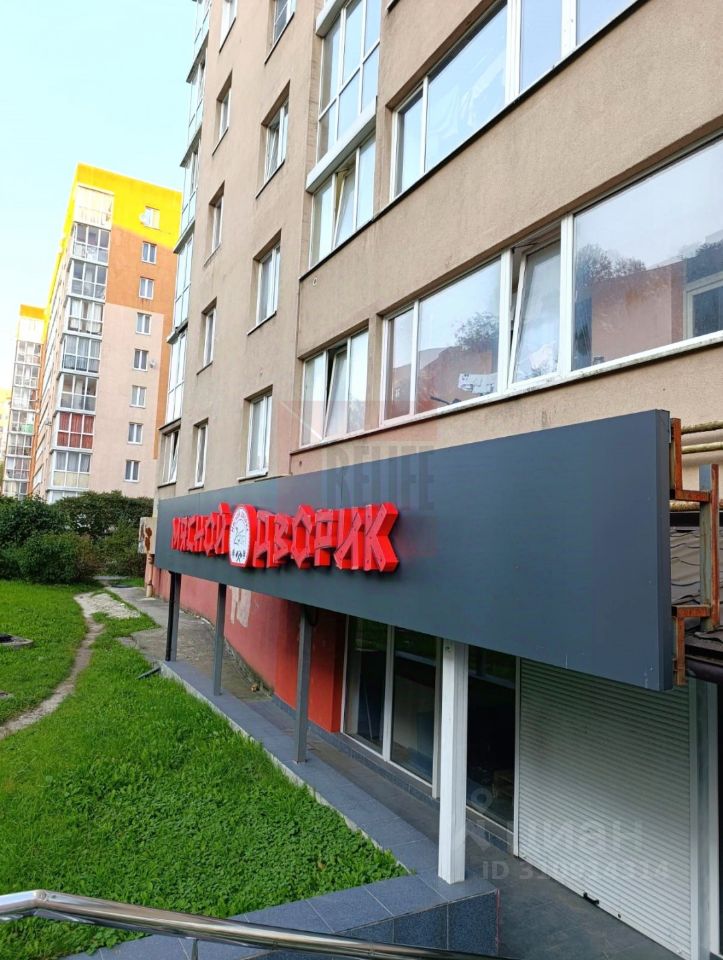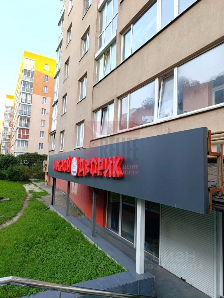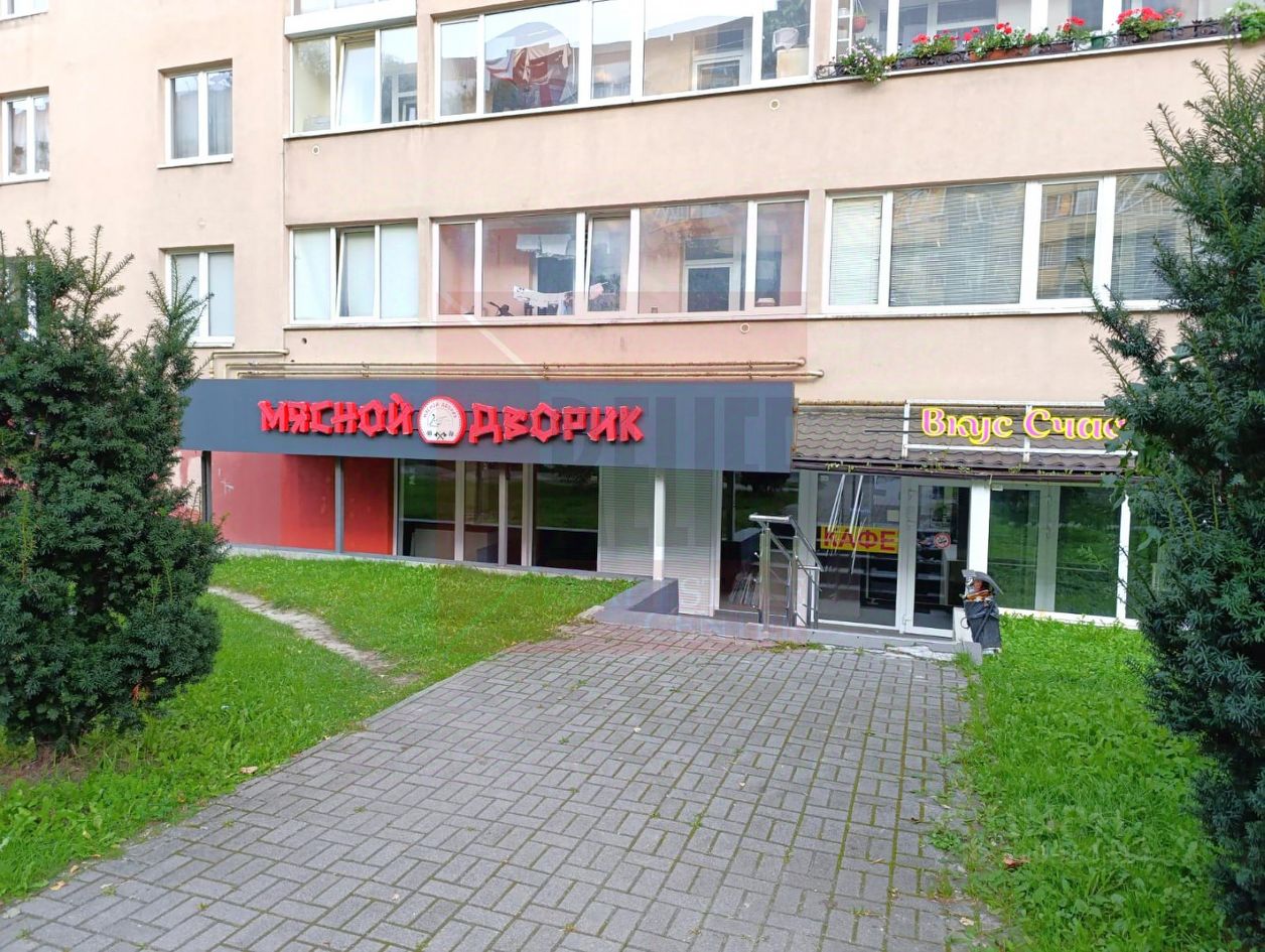 на высоком цокольном этаже девятиэтажного жилого дома