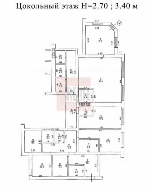высота потолков - 3,4 м и 2,7 м , 2 санузла, подсобные помещения