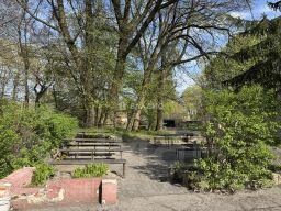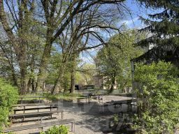 Столы - натуральное дерево на железных опорах, очень мощные и прочные.