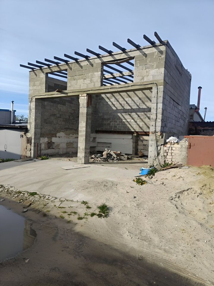 Хорошо подойдёт под перестройку под проект, возможно возведение второго этажа(автосервис, склад, под хранение катера и тп.).