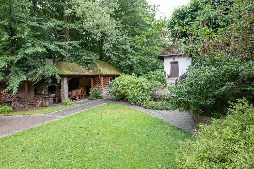 На 17 сотках вокруг особняка есть гриль-беседка и филиал ботанического сада, где высажены более 40 туй высотой 6 м, тисы, ели, рододендроны и плодовые деревья. Это создаёт атмосферу уюта и спокойствия для ваших клиентов и сотрудников.