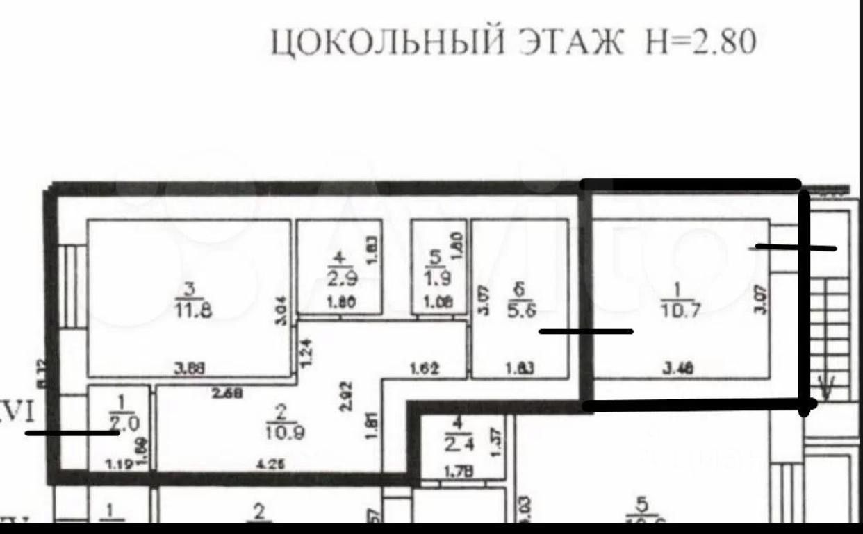 Планировка: высокий цокольный этаж, два отдельных входа с улицы, высокие потолки, просторный холл, место для администратора, 2 изолированных кабинета, кухня, санузел.
