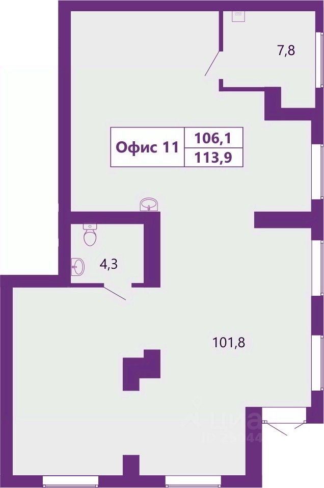 Помещение свободного назначения на 1 этаже, общая площадь 114.8 кв.м., без отделки. Стоимость помещения 16,646,000 руб., цена за кв.м 145,000 руб.