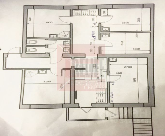 "мокрые точки", помимо санузлов, выведены в каждую из 5 комнат;