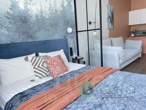 В студиях выполнен качественный и стильный ремонт, с использованием дорогих материалов, техники и мебели! Стильные современные интерьерные решения. Кухня и санузел, выполненны с учетом последних тенденций и технологий, включая встроенные приборы и smart-технологии. Оригинальная мебель и декор, подобранные в едином стиле и гармонично сочетающиеся с общей концепцией пространства. Цветовая гамма, используемая в интерьере состоит из благородных оттенков! Каждая деталь продумана до мелочей, для рационального использования пространства!