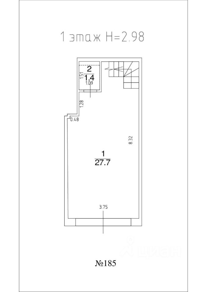 Второй этаж: помещение свободной планировки, предназначенное для оборудования офиса, складского пространства или зоны обслуживания клиентов.