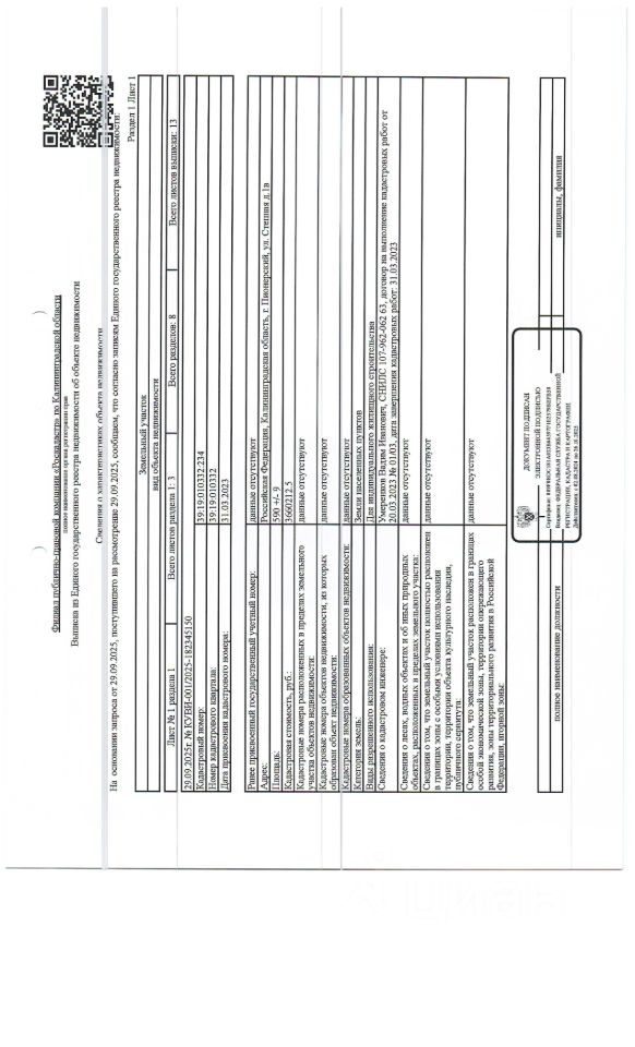 Данные получены с сайта ГИС Торги. категория земель - земли населенных пунктов, вид разрешенного использования - для индивидуального жилищного строительства.