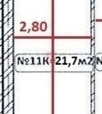 Параметры помещения: высота потолка 2,35 метра, ширина 2,80 метра, длина 7,74 метра.