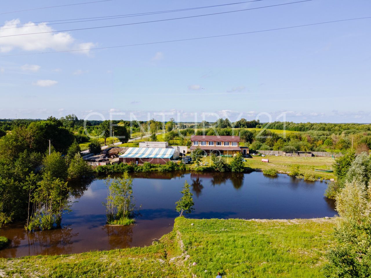 На территории участка собственный водоем, зарыбленный различными видами: белый амур, толстолобик, форель, зеркальный карп, карась.