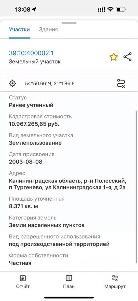Кадастровый номер объекта 39:10:400002:1.