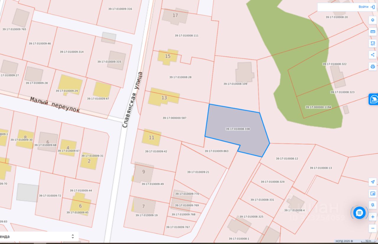 Земельный участок с кадастровым номером 39:17:010008:338, местоположение: Калининградская область, г.о. Светлогорский, г. Светлогорск, ул. Кольцевая, земельный участок 10. Общая площадь 1215 кв.м. Категория земли "земли населенных пунктов", вид разрешенного использования: "для индивидуального жилищного строительства". Ограничения и обременения земельного участка: согласно выписке из ЕГРН. Согласно действующим ПЗЗ земельный участок расположен в зоне застройки индивидуальными жилыми домами (Ж-3).