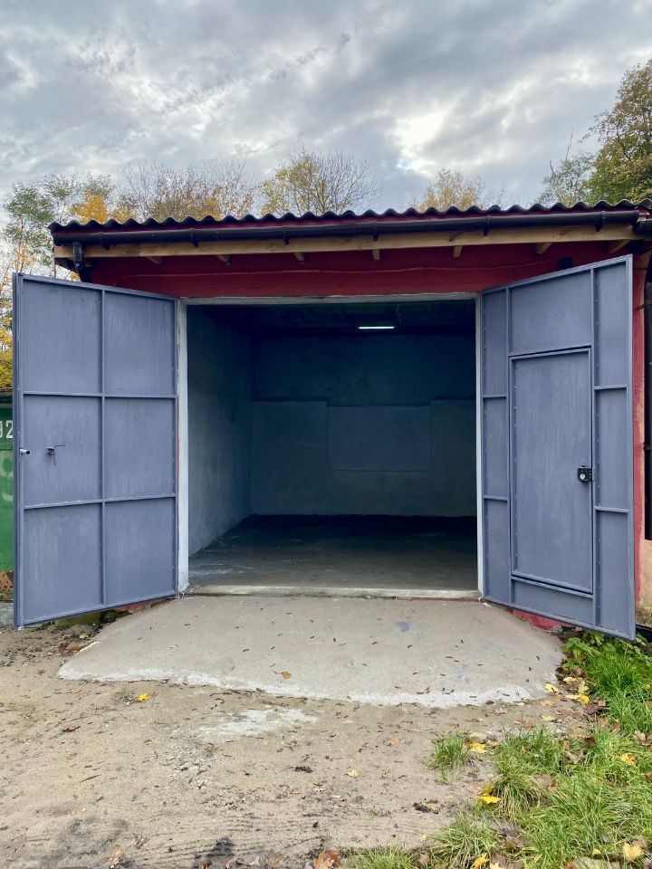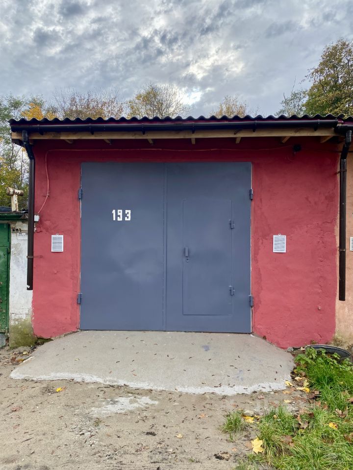 Размер ворот 2,5м*2,5м. Гараж полностью оштукатурен и покрашен.
