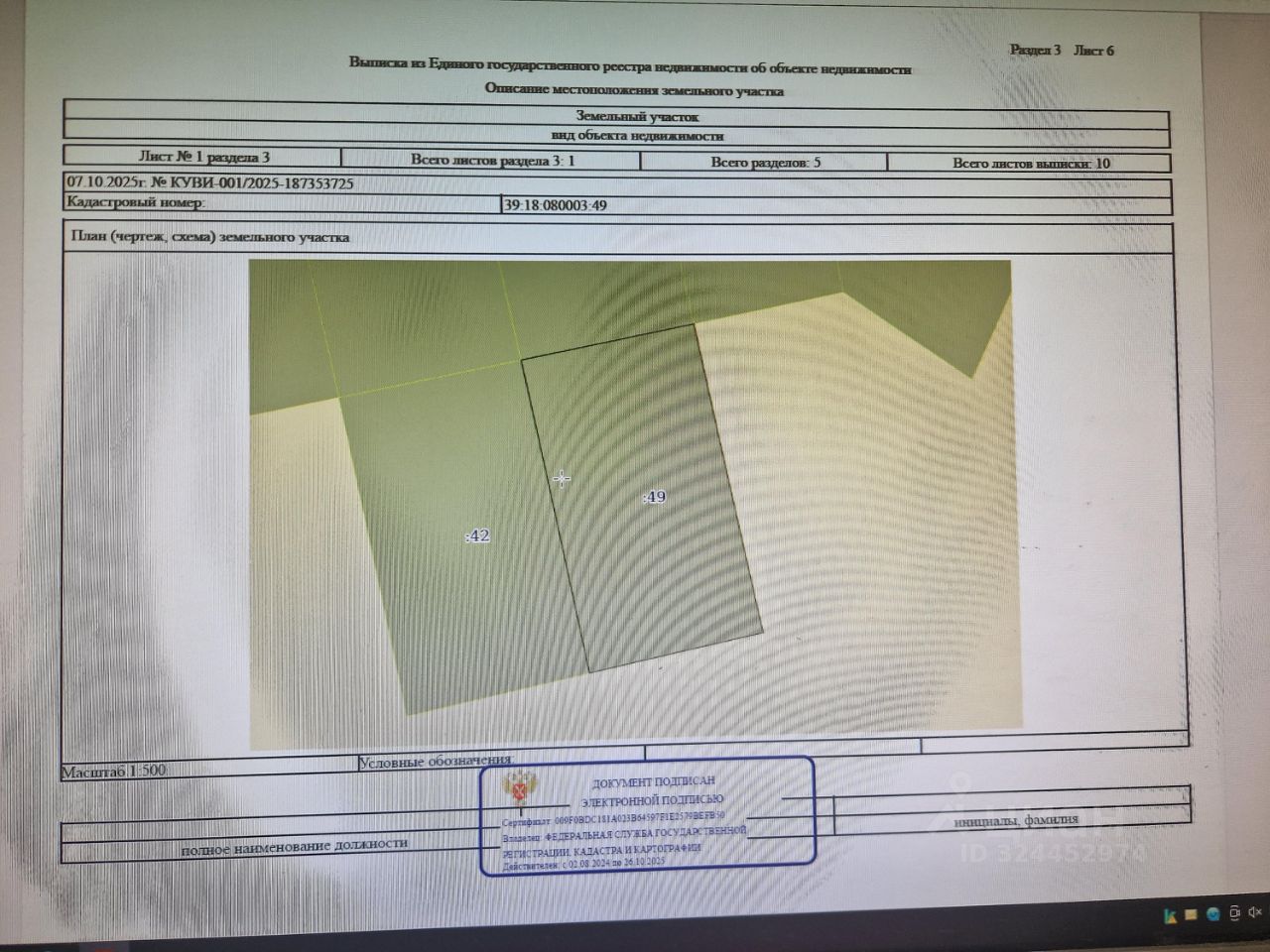 право собственности земельного участка с КН 39:18:080003:49