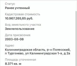 Продается участок ПРОМ. НАЗНАЧЕНИЯ на въезде в п. Тургенево прямо вдоль трассы на Калининград-Полесск 27А-024