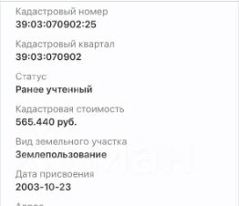Кадастровый номер объекта 39:03:070902:25