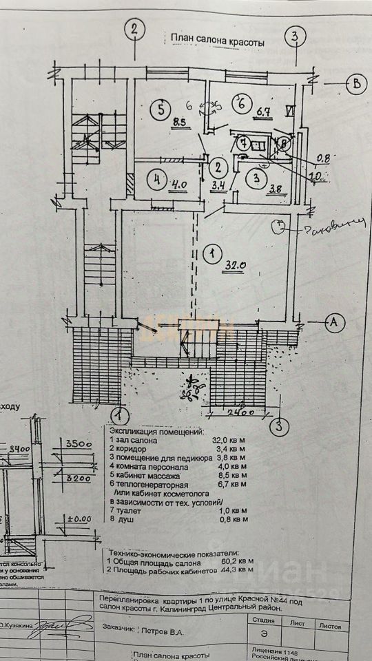 Помещение площадью 65 кв. м. расположено на первом этаже с отдельным входом.