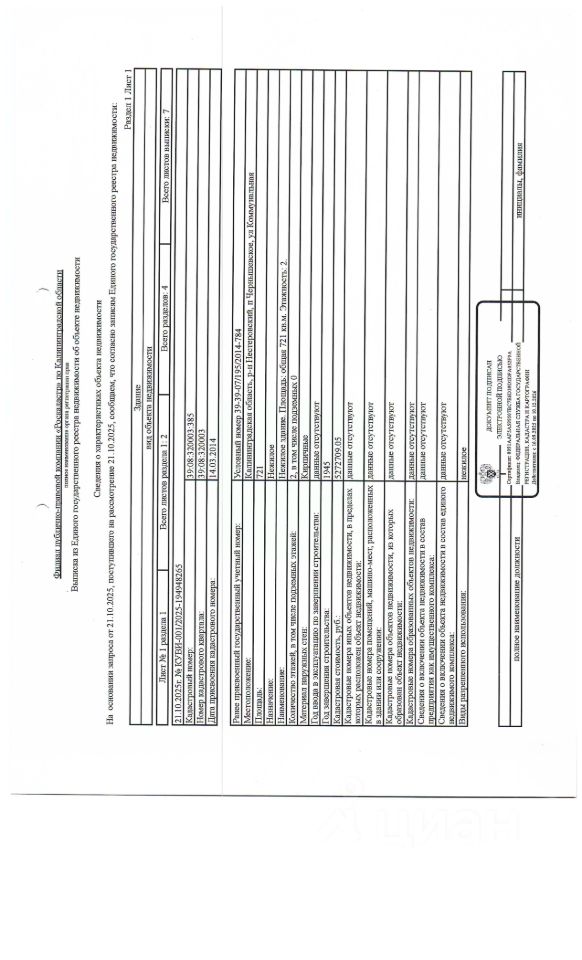 количество этажей - 2, в том числе подземных 0, год постройки - 1945, местоположение по адресу: Калининградская обл., Нестеровский р-н, пос. Чернышевское, ул. Коммунальная. Границы земельного участка не сформированы.