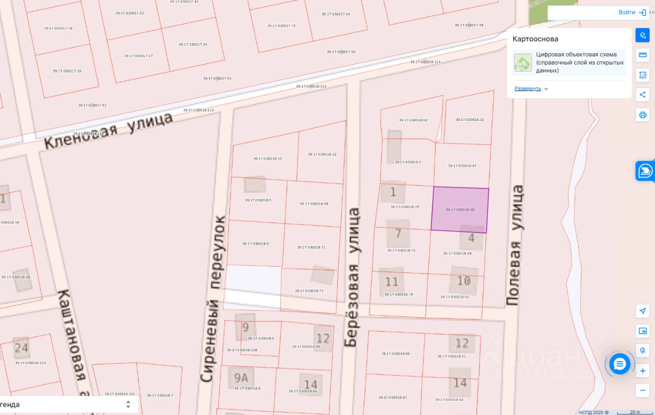 Земельный участок с кадастровым номером 39:17:030018:48, местоположение: Калининградская область, р-н Светлогорский, пгт. Приморье, ул. Полевая, д. 6. Общая площадь 800 кв.м. Категория земли "земли населенных пунктов", вид разрешенного использования: "строительство индивидуального жилого дома". Ограничения и обременения земельного участка: согласно выписке из ЕГРН. Согласно действующим ПЗЗ земельный участок расположен в зоне застройки индивидуальными жилыми домами (Ж-4).