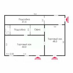зал 48м2, подсобное помещение 41,5м2
