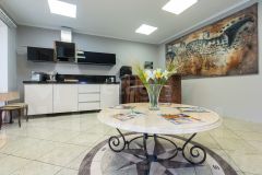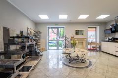 Автономное отопление и подогрев полов гарантируют комфорт в любое время года, а каменные полы подчеркивают тематику бизнеса и отличаются долговечностью.