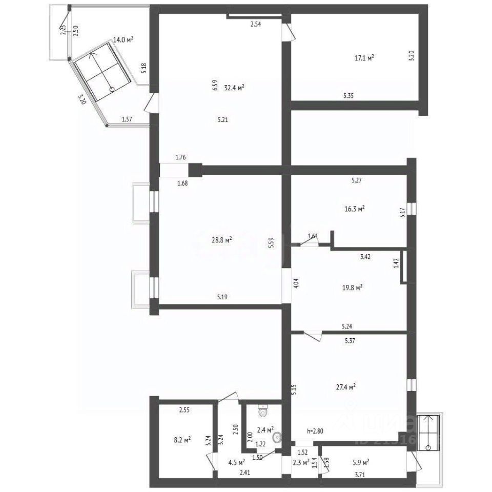 Высота потолков - 2,8 метра