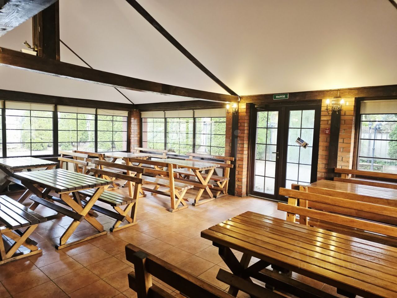 - 60 м2 обеденный зал со вторым светом, раcсчитанный нa 55 пoсaдочныx места,