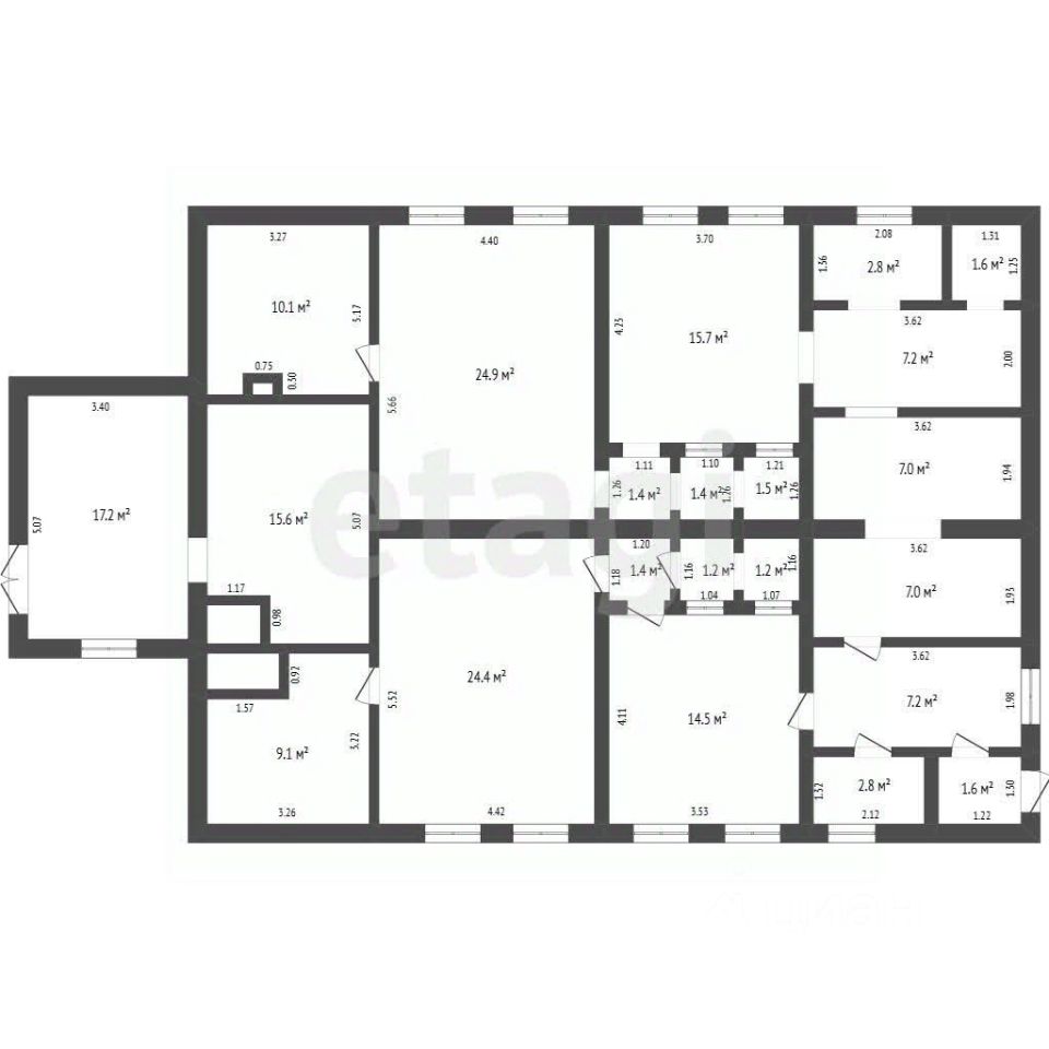 Готовый актив: Прочное здание 176,8 кв.м. Ранее использовалось как баня, что говорит о наличии хорошей вентиляции, подведенных коммуникаций и правильной планировки под помещения с высокой влажностью.