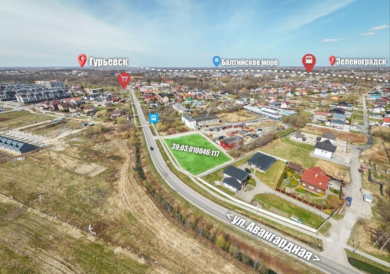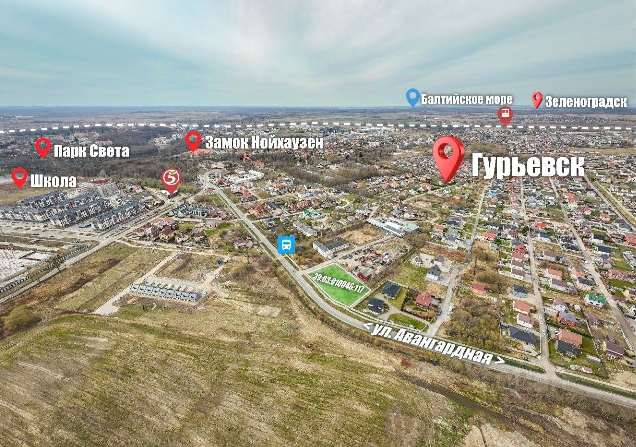 Отличная транспортная доступность, рядом с автобусной остановкой, расположен вдоль асфальтной дороги г. Гурьевск - пос. Авангардное.