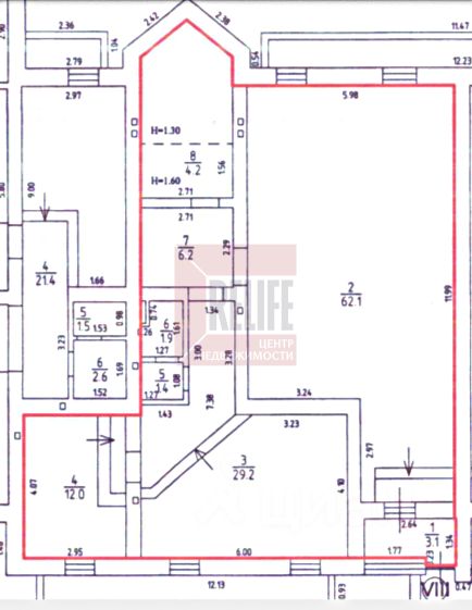высота потолков - 2,5 м , санузел, подсобное помещение