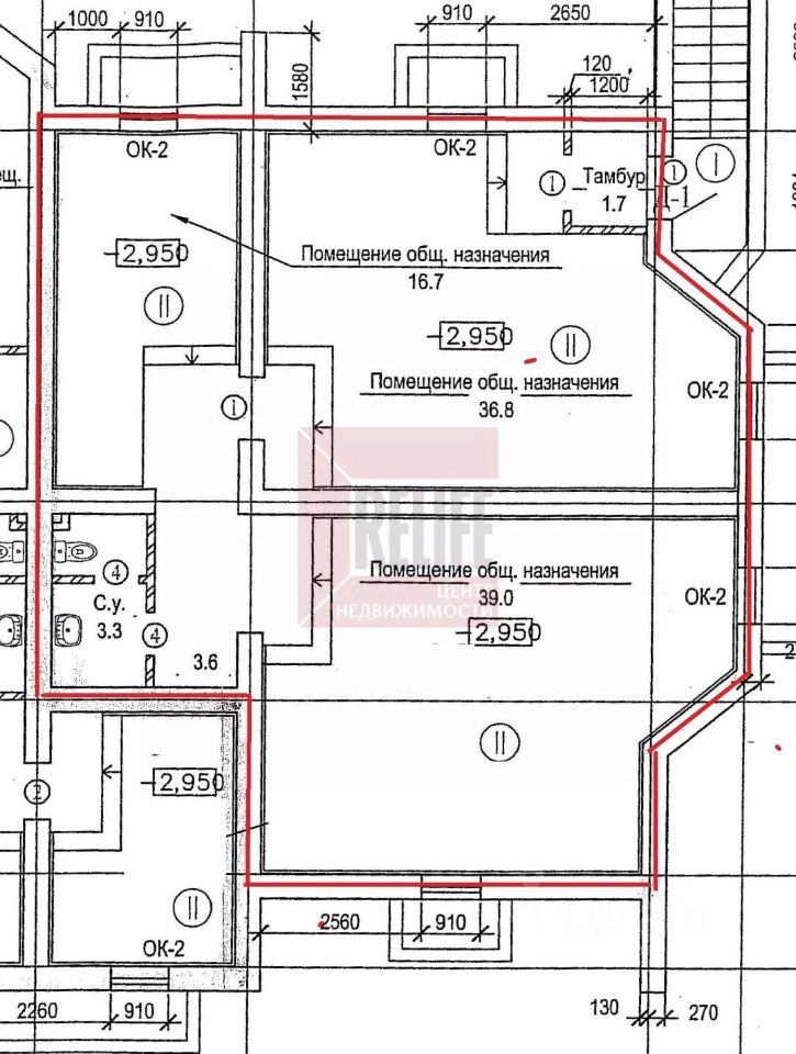 высота потолков - 2,5 м , санузел, подсобное помещение