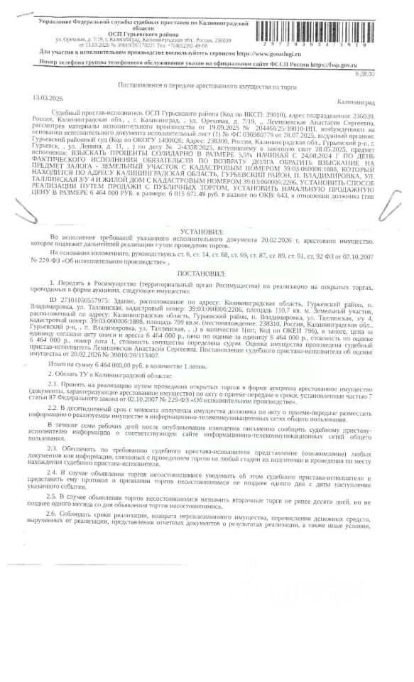 АукционОбъект реализуется посредством электронных торгов. Конечную информацию об оплате, дополнительных платежах и условия заключения договора смотрите в документах извещения к лоту, на сайте электронной торговой площадки.