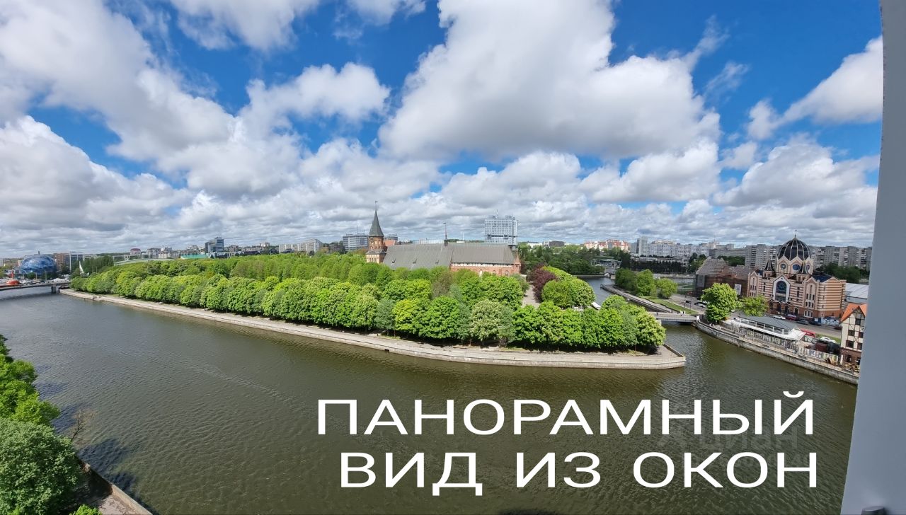 КВАРТИРА ВИДОВАЯ. Окна кухни, гостинной и детской( 2 окна) выходят на реку , Остров Канта и Собор Канта. В районе очень тихо.
