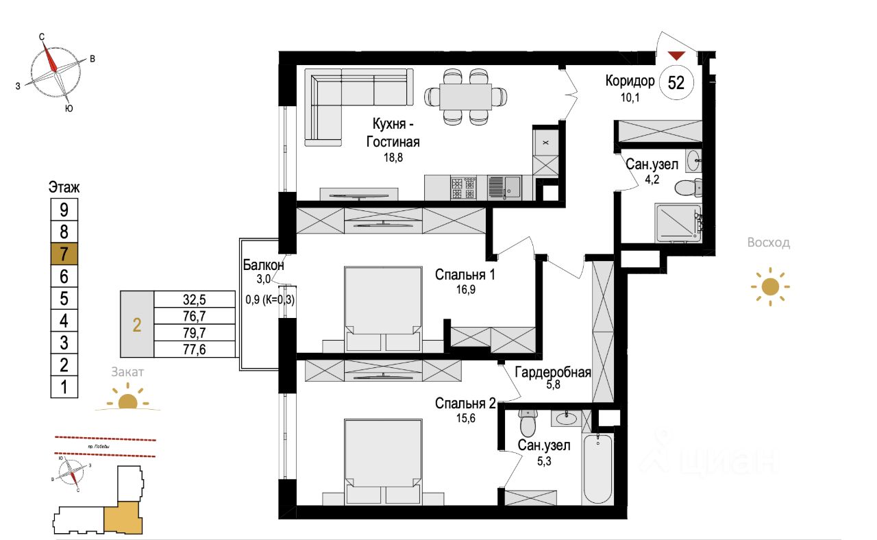 При покупке в 100% оплату за собственные средства (или ипотека без субсидирования), а также при рассрочке в зависимости от размера ПВ предоставляется СКИДКА!
