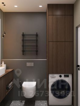 Стильная графитовая ванная в паре с холодным оттенком дерева напоминает о гордой сдержанности и чистоте линий.