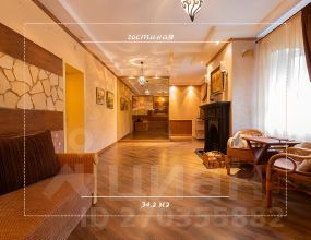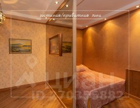 - гостиная 34.2 м2 с камином с отделенной приватной спальной зоной за зеркальной перегородкой