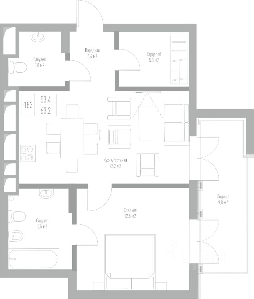 Общая площадь63,2 м²