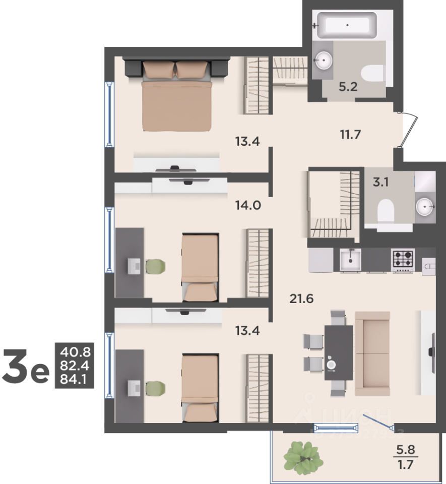 84,1 м²