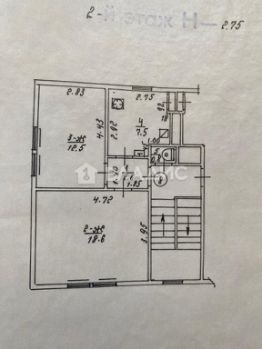 Общая площадь 42 кв.м. Комнаты изолированные (12.5 кв.м. и 18.6 кв.м.), кухня 7,5 кв.м.