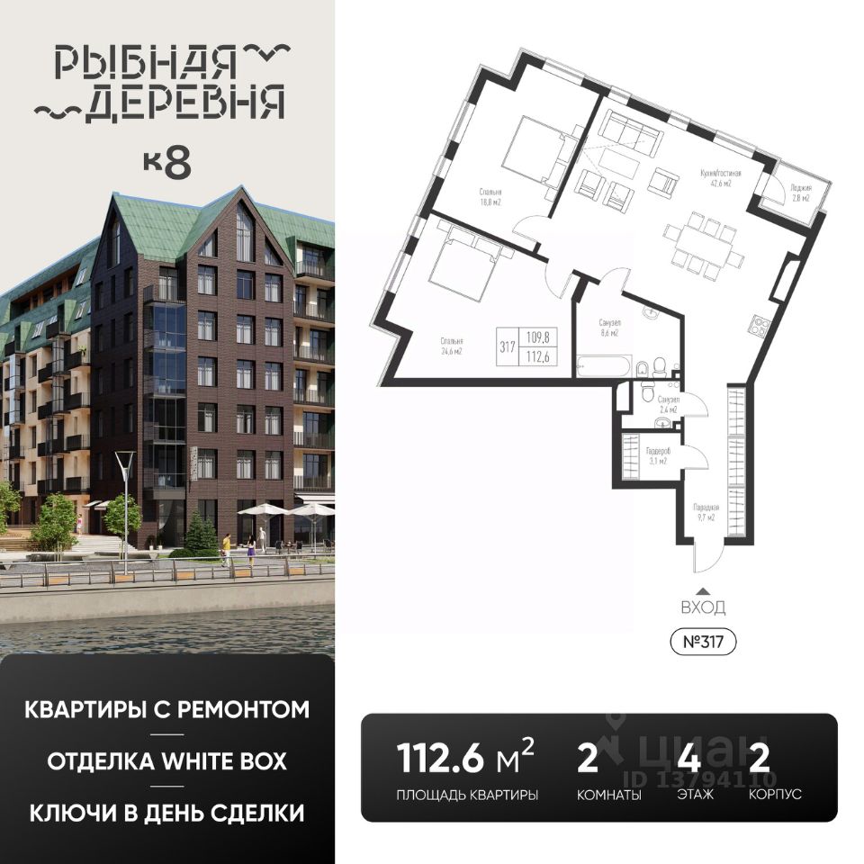 При 100% оплате за собственные средства (или ипотека без субсидирования), а также при рассрочке в зависимости от размера первоначального взноса и срока предоставляется СКИДКА! Жилой комплекс Рыбная деревня находится в самом сердце Калининграда. Его месторасположение бесспорно является одним из лучших в городе: удобная транспортная развязка, качественное инфраструктурное окружение, близость к центру, многочисленные кафе и рестораны, интересные прогулочные маршруты, роскошные виды. Для максимального комфорта жильцов в квартирах продуманы все детали - гардеробные, кухни - столовые, гостевые санузлы, мастер спальни, панорамное остекление. На территории комплекса предусмотрен подземный паркинг, детские площадки, дизайнерский ремонт мест общего пользования, многоуровневая система безопасности, видеонаблюдение. Квартиру можно приобрести с использованием ипотеки, рассрочки от застройщика или 100% оплатой за счёт собственных средств. Звоните, с радостью проведем показ квартиры в удобное для Вас время! Предложение ограничено. Застройщик "ООО СЗ ЭТАЛОН СТРОЙ"