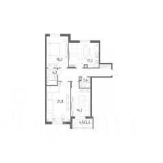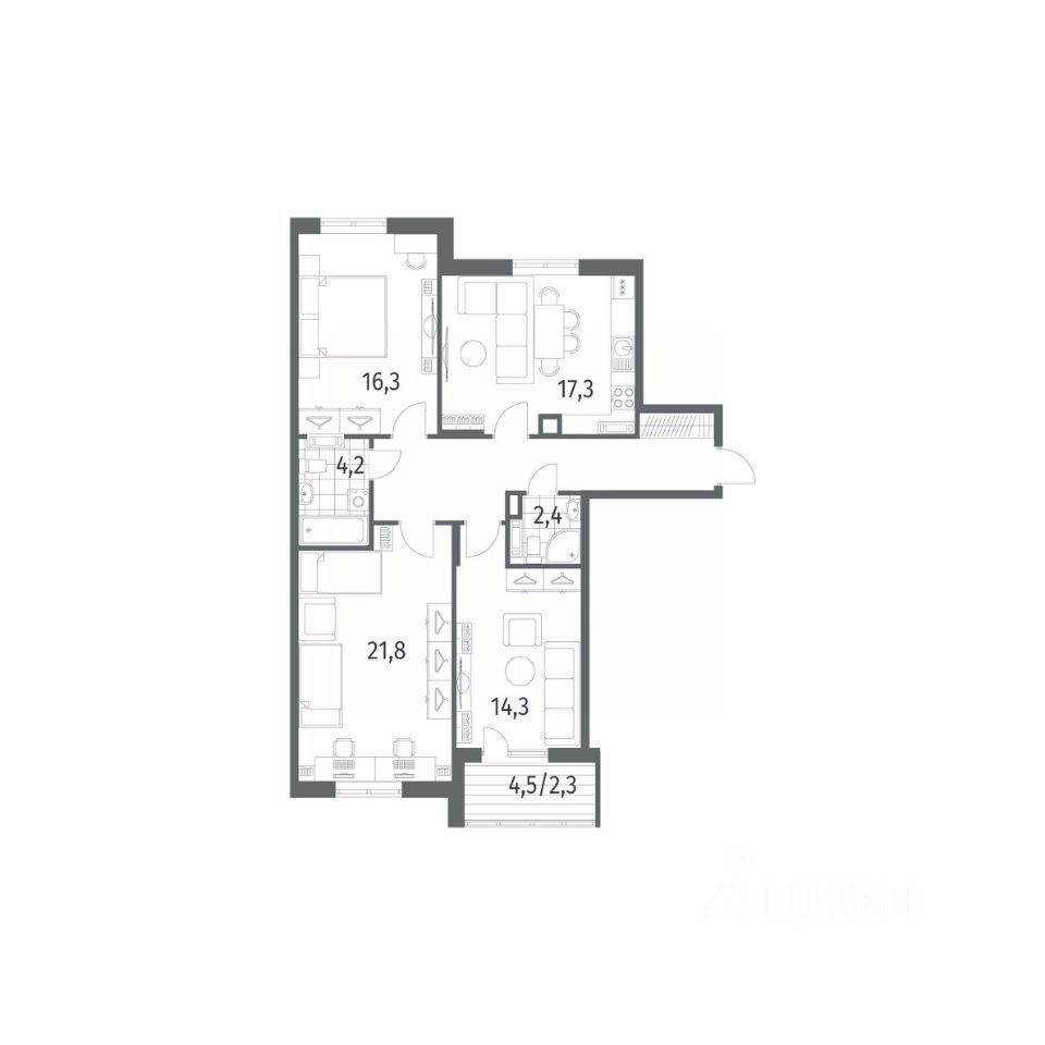 Продается квартира площадью 90.9 м² на 4 этаже 1 секции в Речной парк от компании ГК "ТРЕСТ". Площадь кухни 17.3 м².
