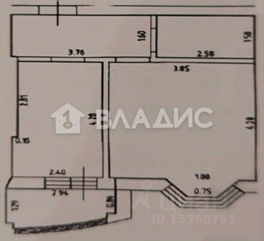 Комната 17,4 кв.м, кухня 9,9 кв.м., совмещенный санузел 4 кв.м., холл 6 кв.м., лоджия 3,8 кв.м.