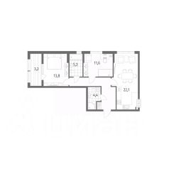 в Дом на Красной от компании ГК "ТРЕСТ". Площадь кухни 22.1 м². Жилой комплекс комфорт-класса "Дом на Красной" расположен в Центральном районе Калининграда на пересечении улиц Красная и Псковская. Жилой комплекс включает в себя два дома высотой 8 этажей. Срок сдачи намечен на 4 квартал 2026 года.