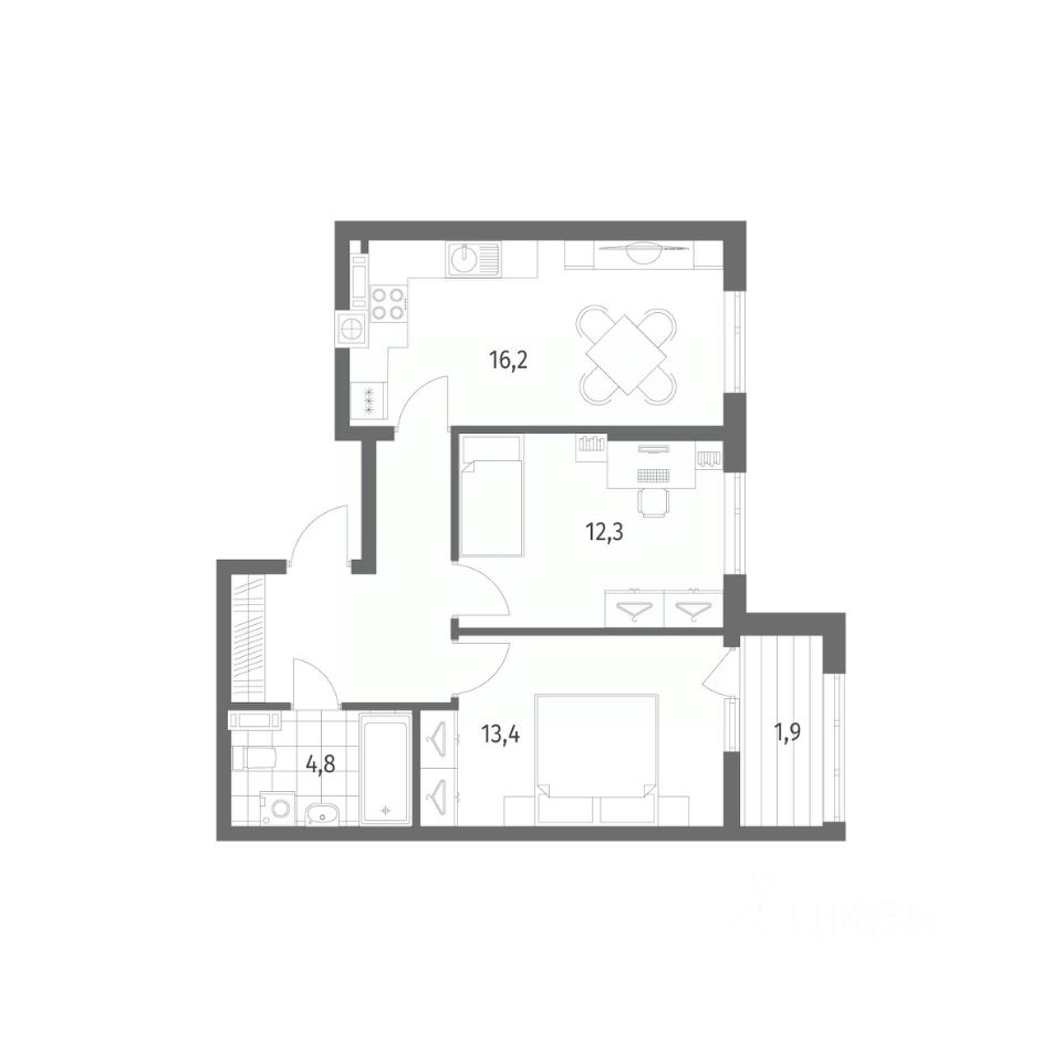 в Дом на Красной от компании ГК "ТРЕСТ". Площадь кухни 16.2 м². Жилой комплекс комфорт-класса "Дом на Красной" расположен в Центральном районе Калининграда на пересечении улиц Красная и Псковская. Жилой комплекс включает в себя два дома высотой 8 этажей. Срок сдачи намечен на 4 квартал 2026 года.