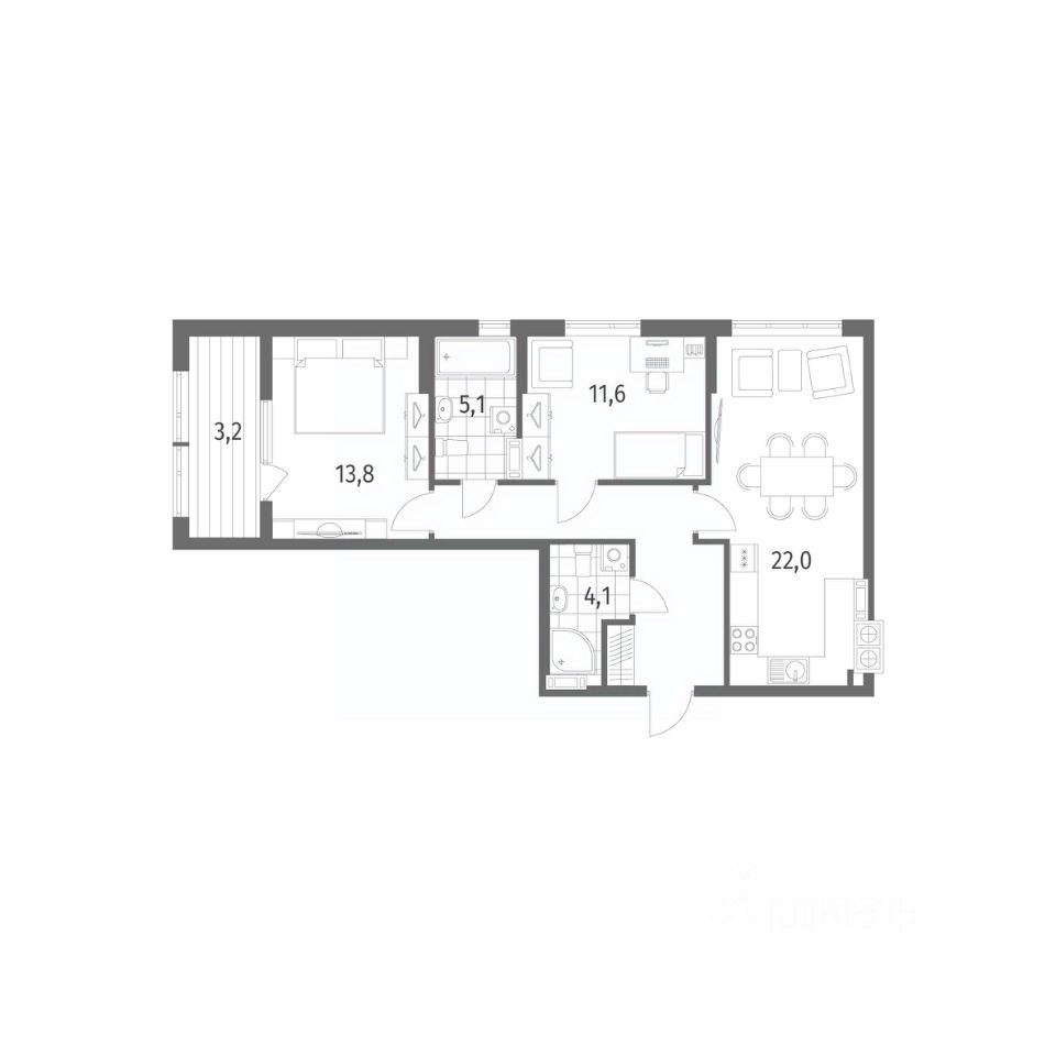 в Дом на Красной от компании ГК "ТРЕСТ". Площадь кухни 22 м².  Жилой комплекс комфорт-класса "Дом на Красной" расположен в Центральном районе Калининграда на пересечении улиц Красная и Псковская. Жилой комплекс включает в себя два дома высотой 8 этажей. Срок сдачи намечен на 4 квартал 2026 года.